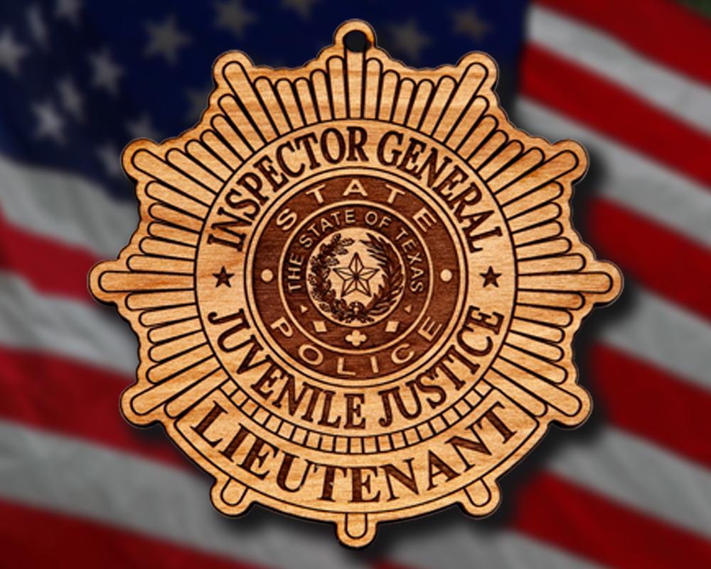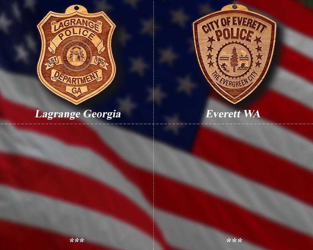 Wooden Miscellaneous Police Badge or Patch Ornament. Great for honoring your local police officer and employees, also makes a great promotion or retirement gift. Ornaments are solid wood and approximately 4" in the longest direction. When you place your order, please include the badge number and /or rank etc. if applicable.