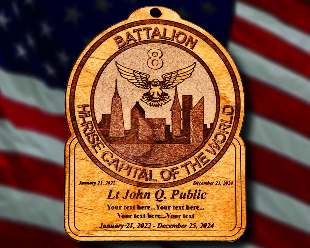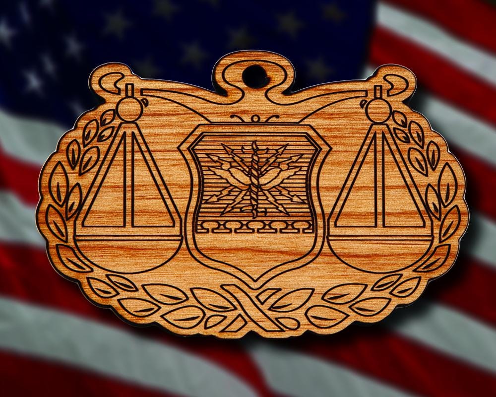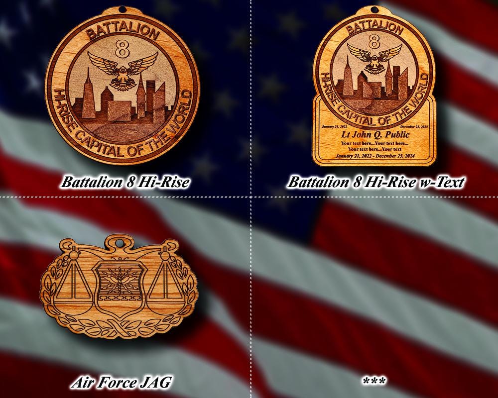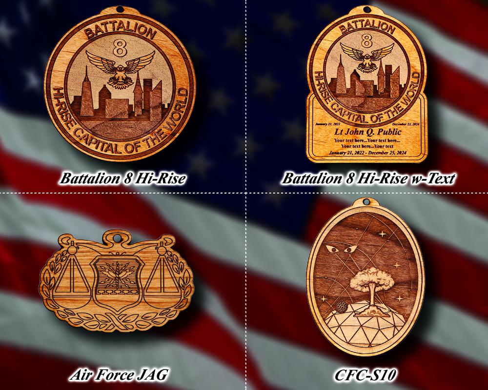 Wooden Miscellaneous Military Badge or Patch Plaque. Great for honoring men and women of the services, also makes a great promotion or retirement gift. Ornaments are solid wood and approximately 4" tall. When you place your order, please include the badge number and /or rank etc. if applicable.