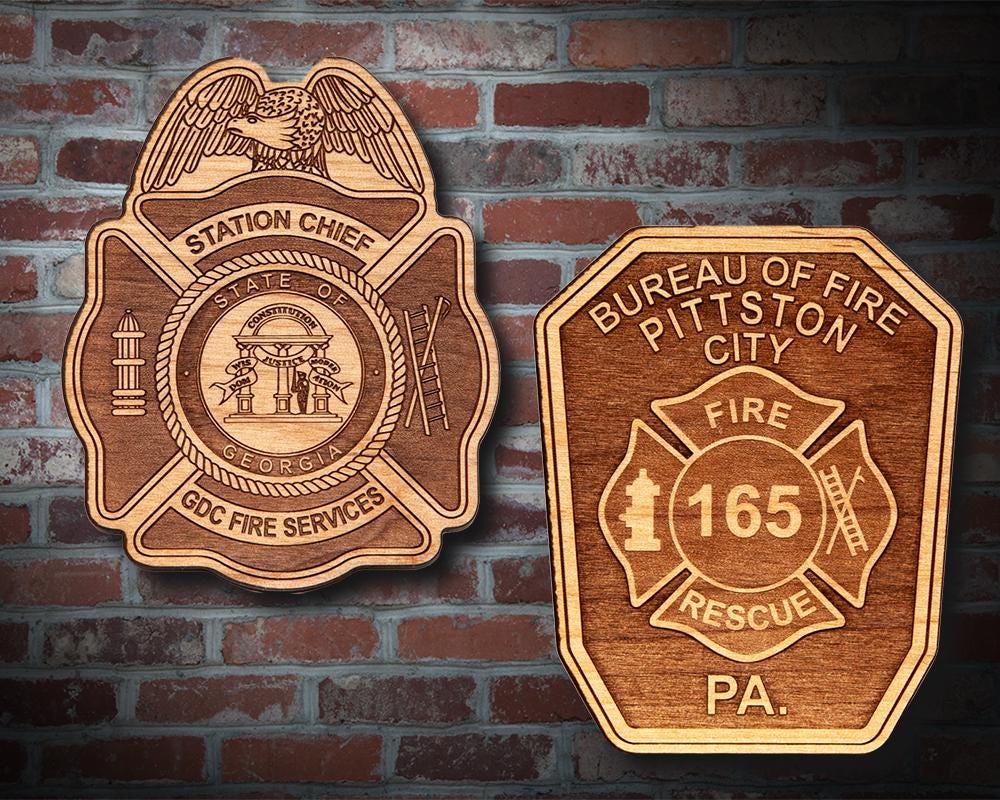 Misc. Wooden EMS FD Badge or Patch Plaque. Great for honoring your local first responder and makes a great promotion or retirement gift. Plaques are solid wood and approximately 11" tall. When you place your order for a badge please include the badge number, rank etc. if applicable, this can be input in personalization section or in the checkout section where it says, "Note to Seller".