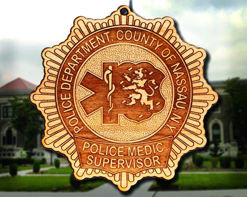 Personalized Wooden Nassau County Police Badge or Shoulder Patch Ornament. Great for honoring the Nassau County Police Officer. Ornaments are approximately 4" high. WHEN ORDERING A BADGE BE SURE TO INDICATE THE BADGE NUMBER. You can enter information in the "Personalization" section or in the checkout process where it says "Note to seller"