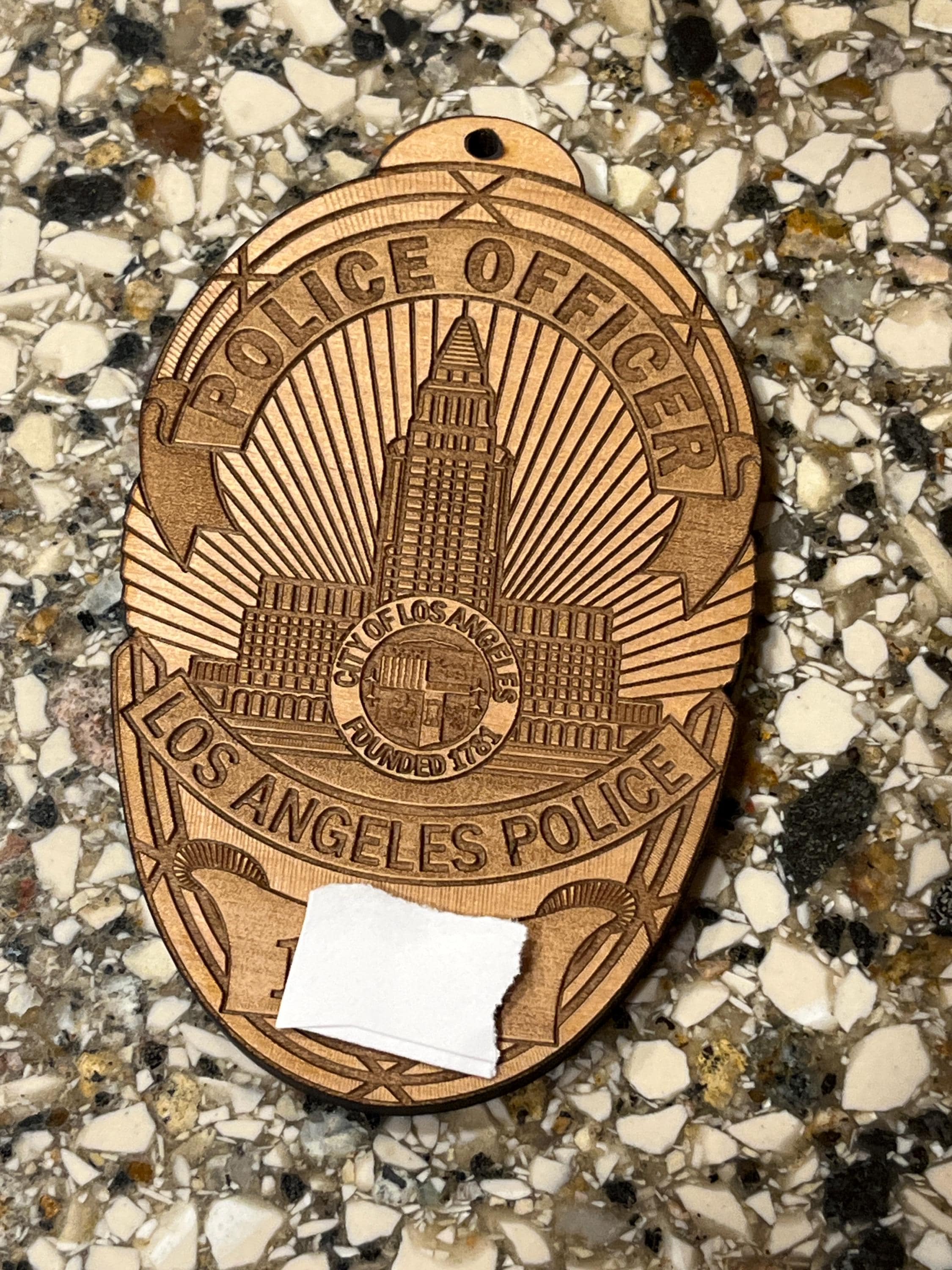 Personalized Wooden LAPD Badge or Shoulder Patch Hanging Ornament . Great for honoring the LAPD Officer. Ornaments are approximately 4" in the longest direction. WHEN ORDERING A BADGE BE SURE TO INDICATE THE BADGE NUMBER IN THE "Note to seller" SECTION OF THE CHECKOUT PROCESS. When ordering patch, if it requires something else in the middle (SWAT, K-9 CRASH, METRO, NARCOTICS, ETC.) please include that in the "Note to seller" section of the checkout process.