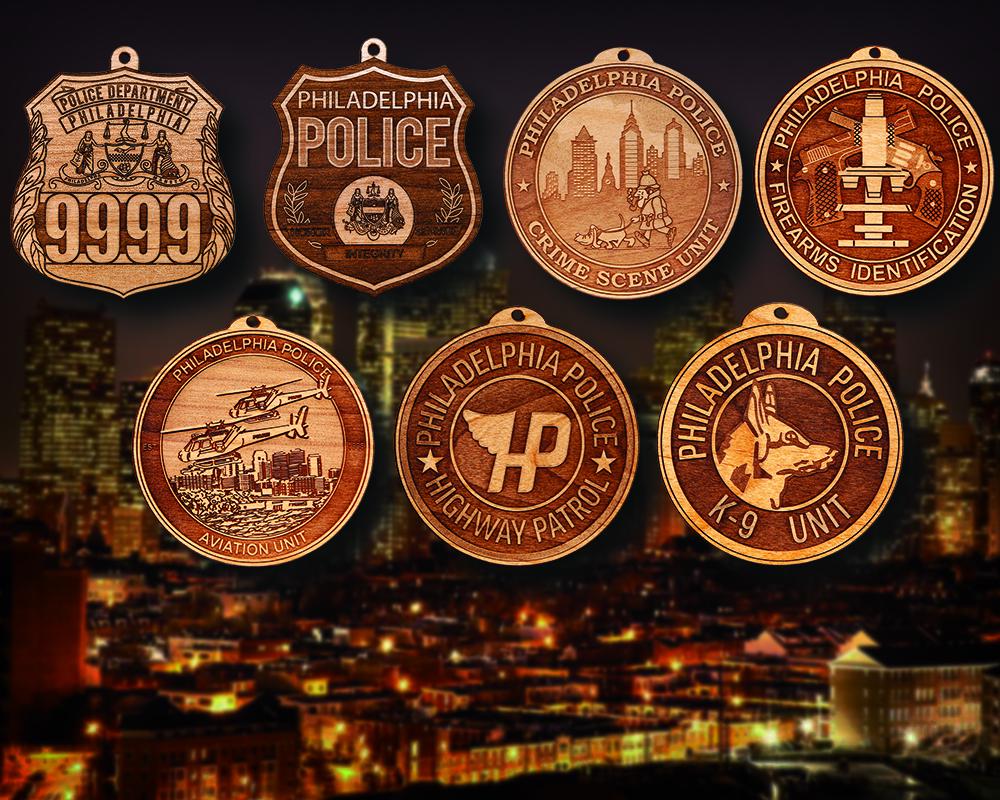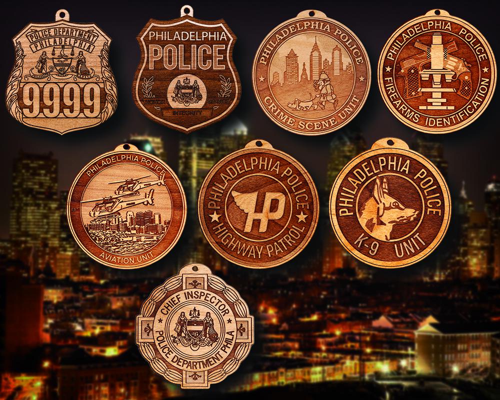 Personalized Wooden Philadelphia PD Badge or Shoulder Patch Hanging Ornament. Great for honoring the Philadelphia PD Officer. Ornaments are approximately 4" in the longest direction. WHEN ORDERING A BADGE BE SURE TO INDICATE THE BADGE NUMBER IN THE "Note to seller" SECTION OF THE CHECKOUT PROCESS.