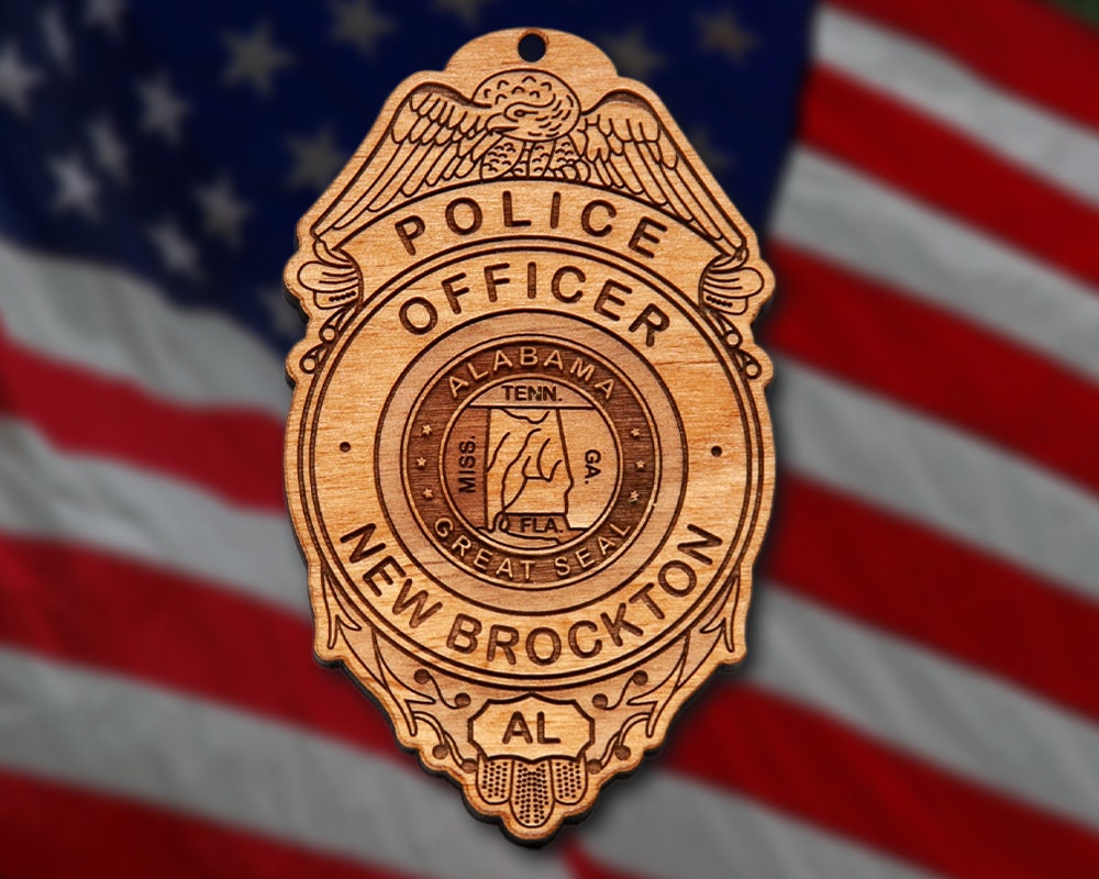 Misc. Wooden Badge or Shoulder Patch Ornament. Great for honoring your local police officer. Ornaments are approximately 4" in the longest direction. When you place your order for a badge please include the badge number and rank, if applicable.